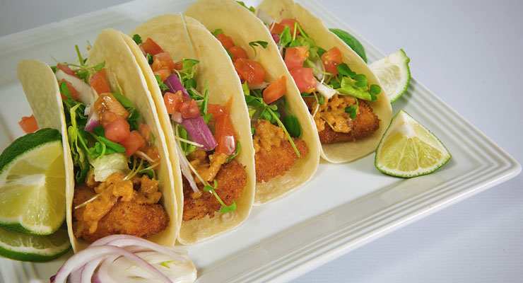 6. Center fillets on soft tortilla shells.